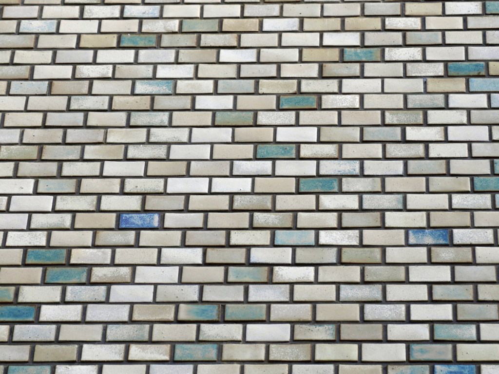 日酒販ビルは現在「中央診療所」として使われています。ビル全体には大佛タイルの小口タイルが使われています。こちらは機械で作られた量産型で、釉薬は「白窯変釉」が使用されています。「酸化焼成」です。一部、「ロットの違い」、「釉薬の厚さによる窯変」、「還元焼成」気味による青色の窯変が見られますが、全て同じ釉薬です。